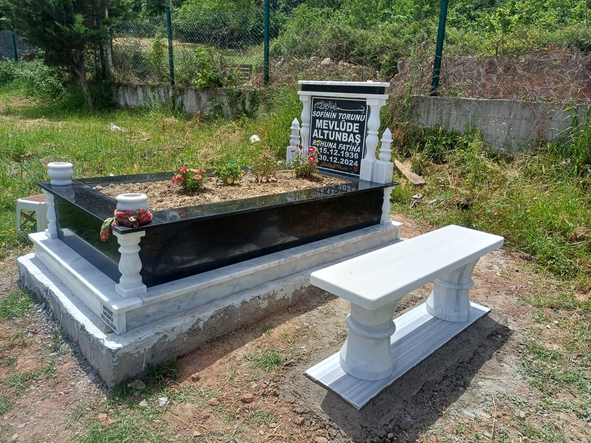 ÇİFT KİŞİLİK TRAVERTEN VE ULUDAĞ SİYAH MERMER MEZAR